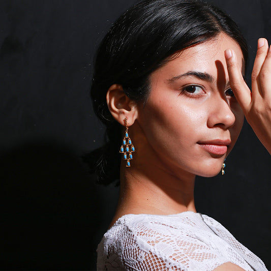 Regular price Rs. 4,599.00Regular priceUnit price / perRs. 5,599.00Sale price Rs. 4,599.00SaleHRIDAYAM HOOPS- TURQUOISE