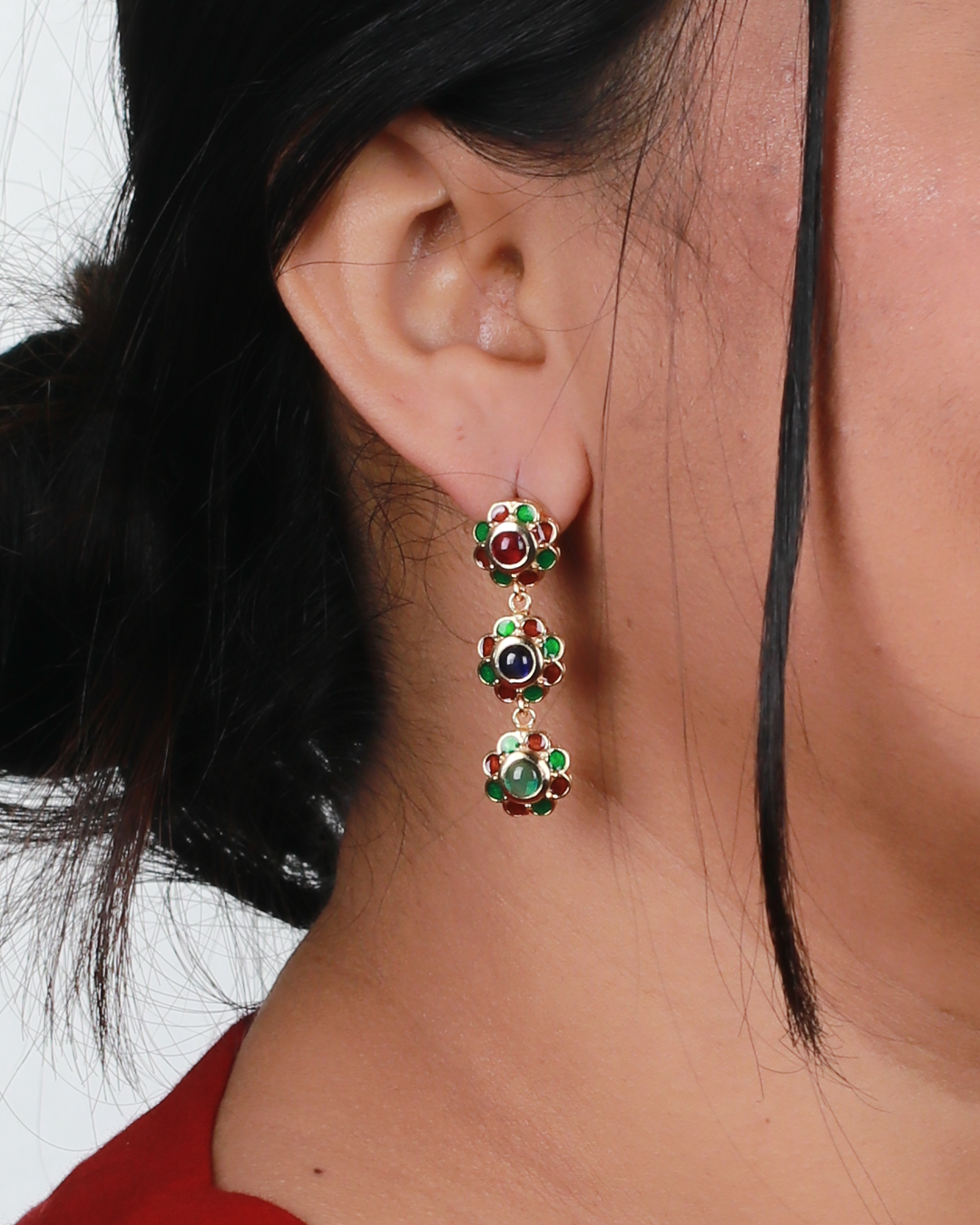 BAHAR Earrings, a timeless flower shaped stud with two layers of danglers in 92.5 Silver is a game changer.