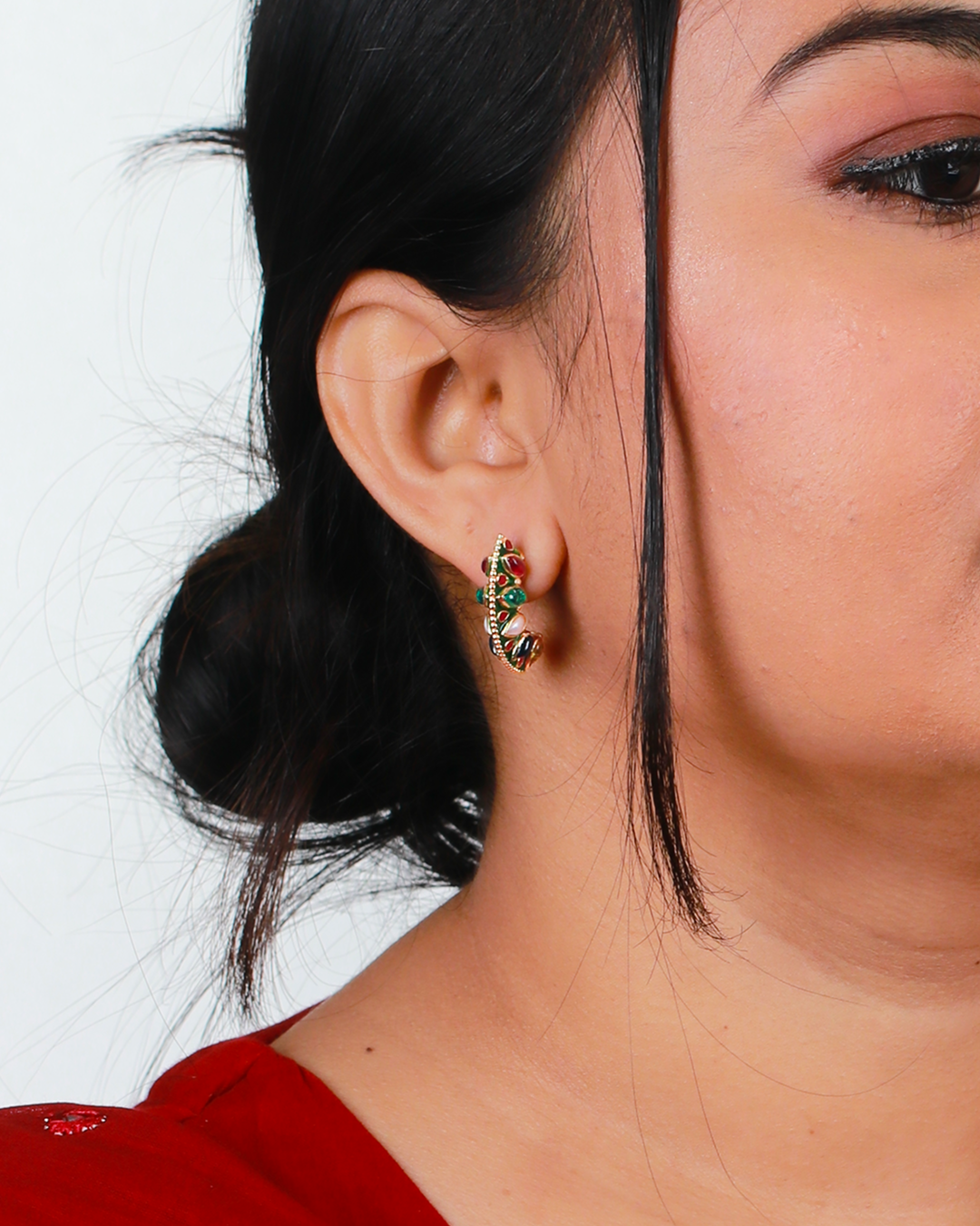 CHAAP Earrings, an enameled arc studded with pearls and semi precious gemstones in 92.5 Silver is a game changer.