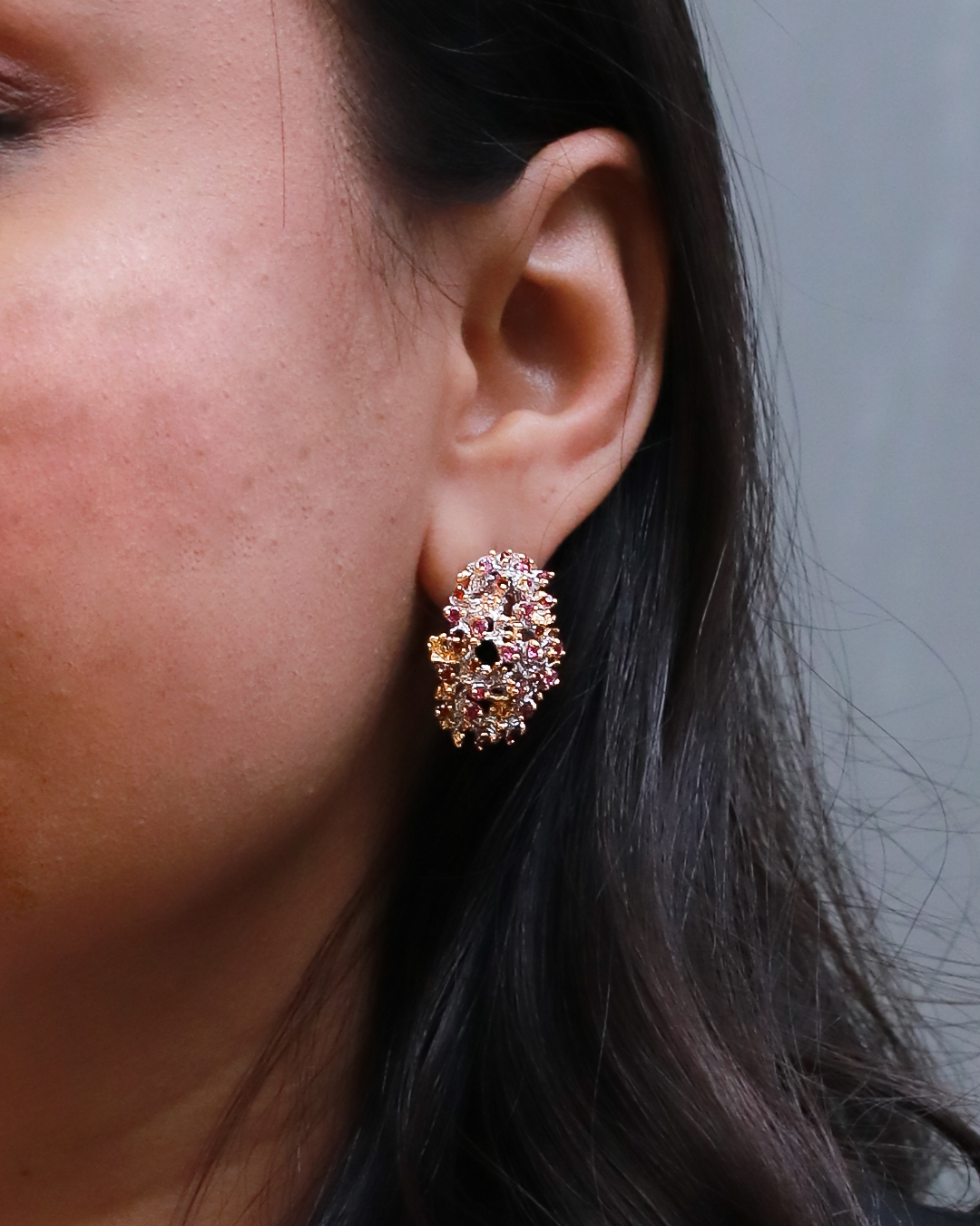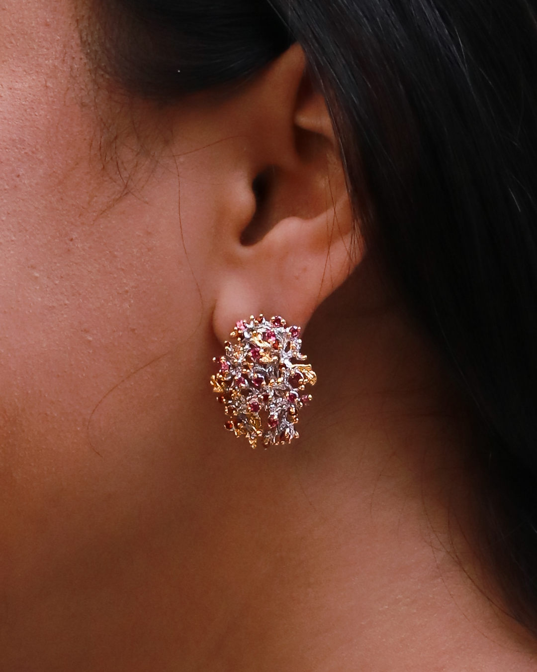 CORELLA, a rich hue of Rhodolite, in combination with Garnet and other gemstones make it stand apart. Coral like structure represents the depths of beauty of the Oceans.